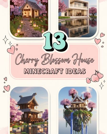 1. Cherry Grove Cottage Imagine a charming cottage nestled within the soft pink-leaved trees of the Cherry Grove Biome (introduced in Minecraft 1.20). Use pastel pink and white terracotta (or wool), cherry wood planks and logs, large windows, and gentle lantern lighting. Place it on a gentle slope with a small stone-path leading up through blossoms. Surround …